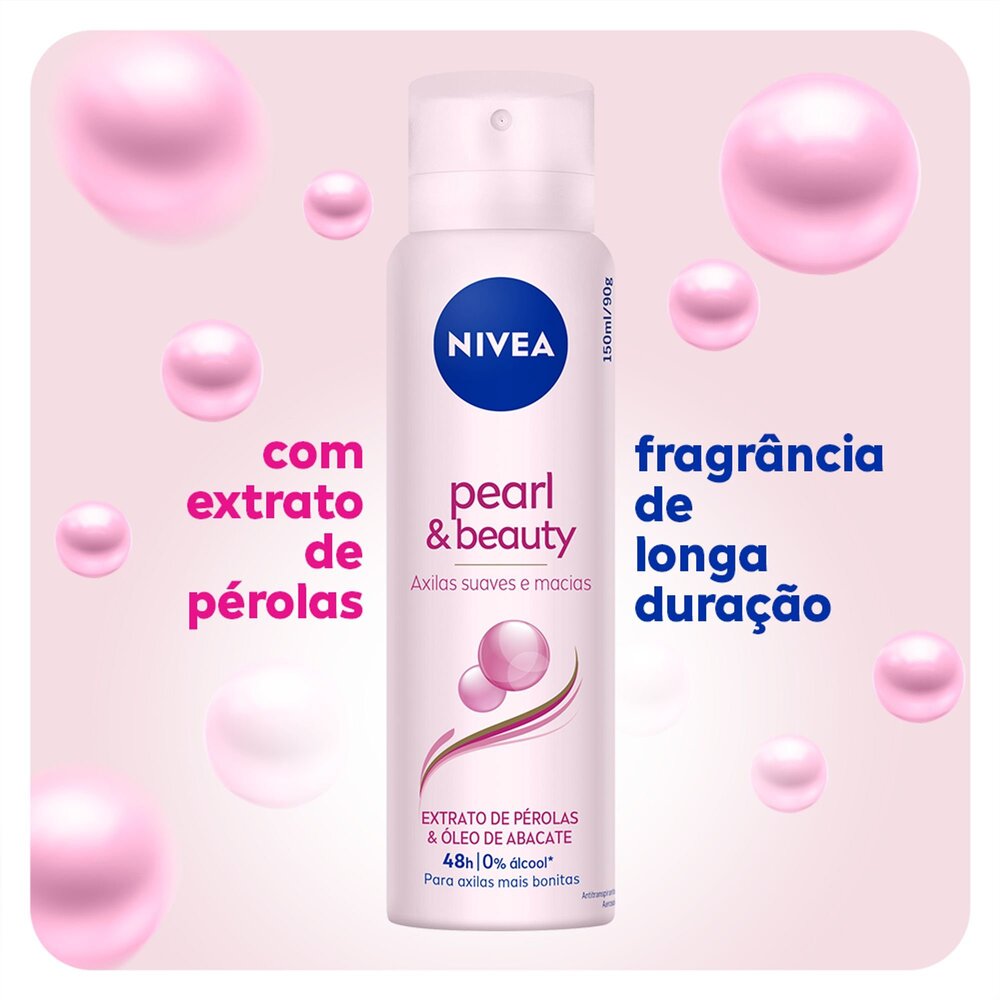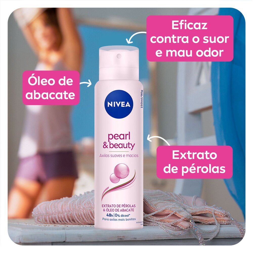 Para que serve o Desodorante Aerosol Nivea Pearl & Beauty? Enriquecido com precioso extrato de pérolas e óleo de abacate, este desodorante atua para dar maciez e suavidade à pele.