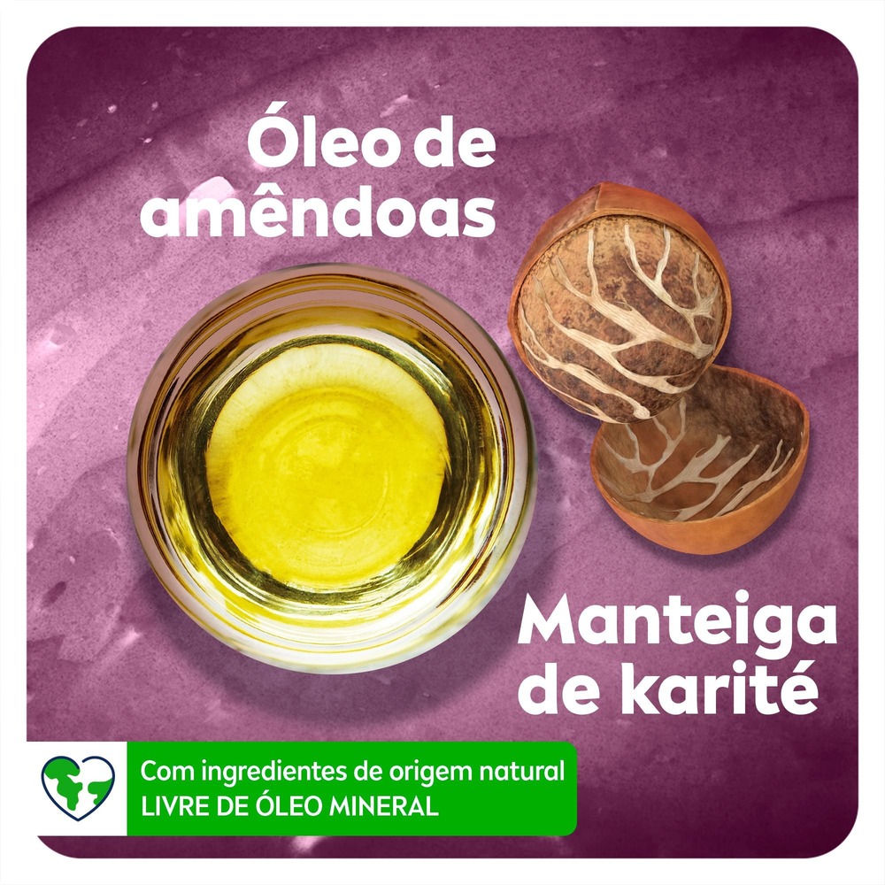 Enriquecido com manteiga de karité, óleo de amêndoas orgânico e vitamina E