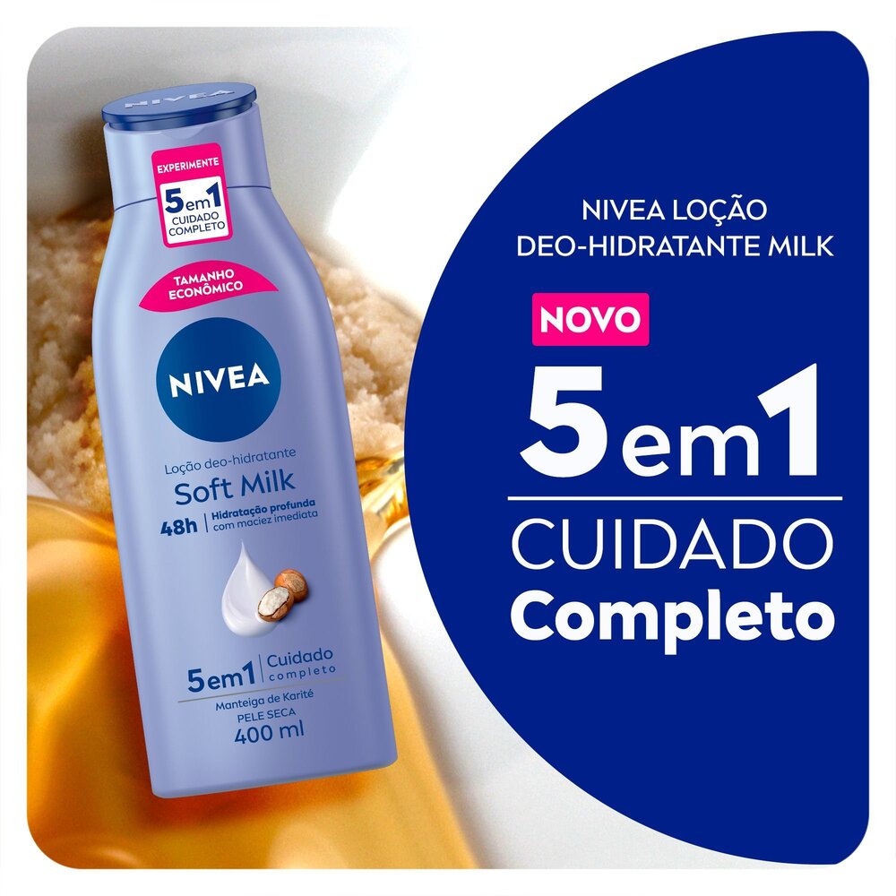 Loção Hidratante NIVEA Soft Milk tem rápida absorção e oferece maciez prolongada. Fórmula com ingredientes naturais. É mais cuidado para você!