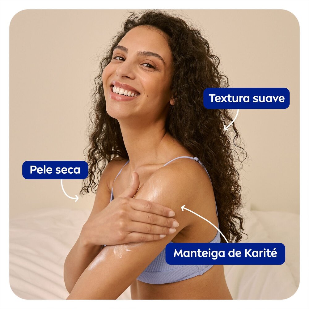O hidratante para pele seca é rico em manteiga de Karité, que deixa a pele macia, perfumada e protegida contra o ressecamento por 48h.
