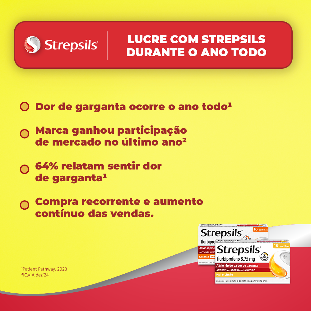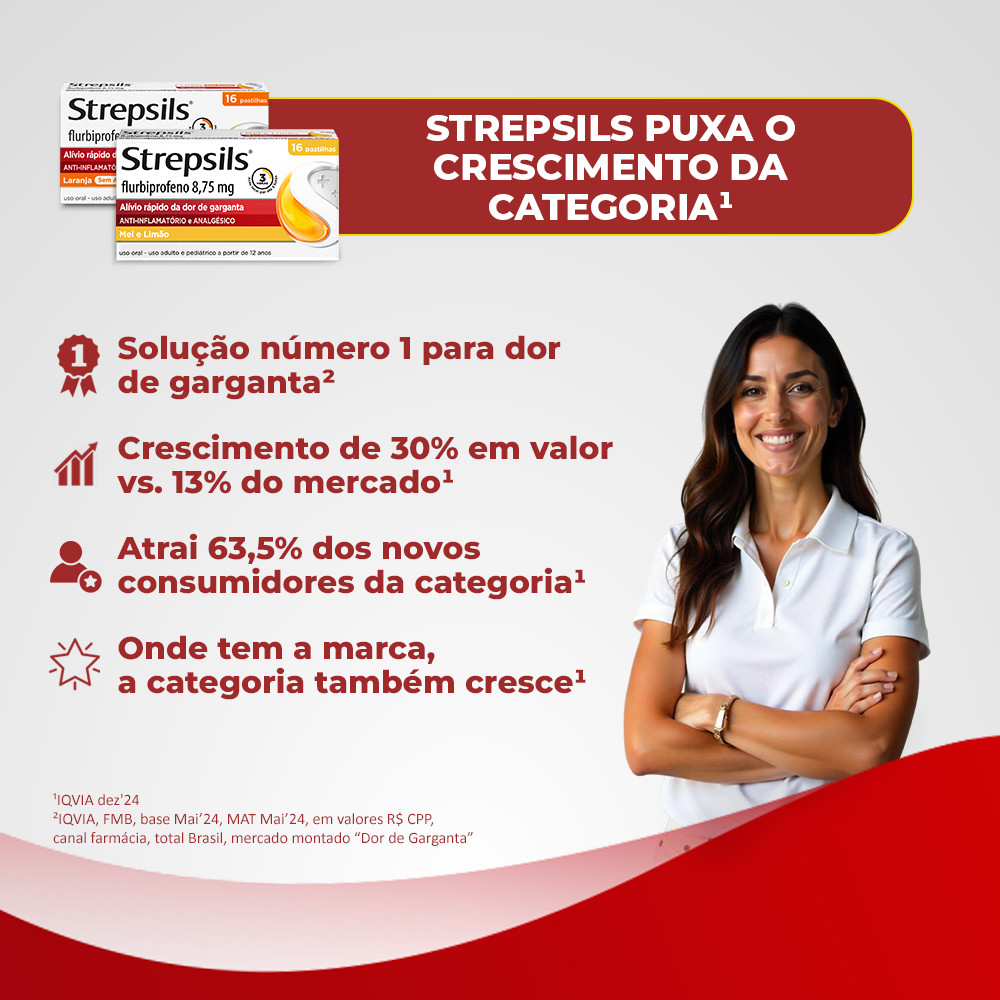 - Strepsils cresce 30% em valor e impulsiona a categoria, que cresce 13% ao ano.