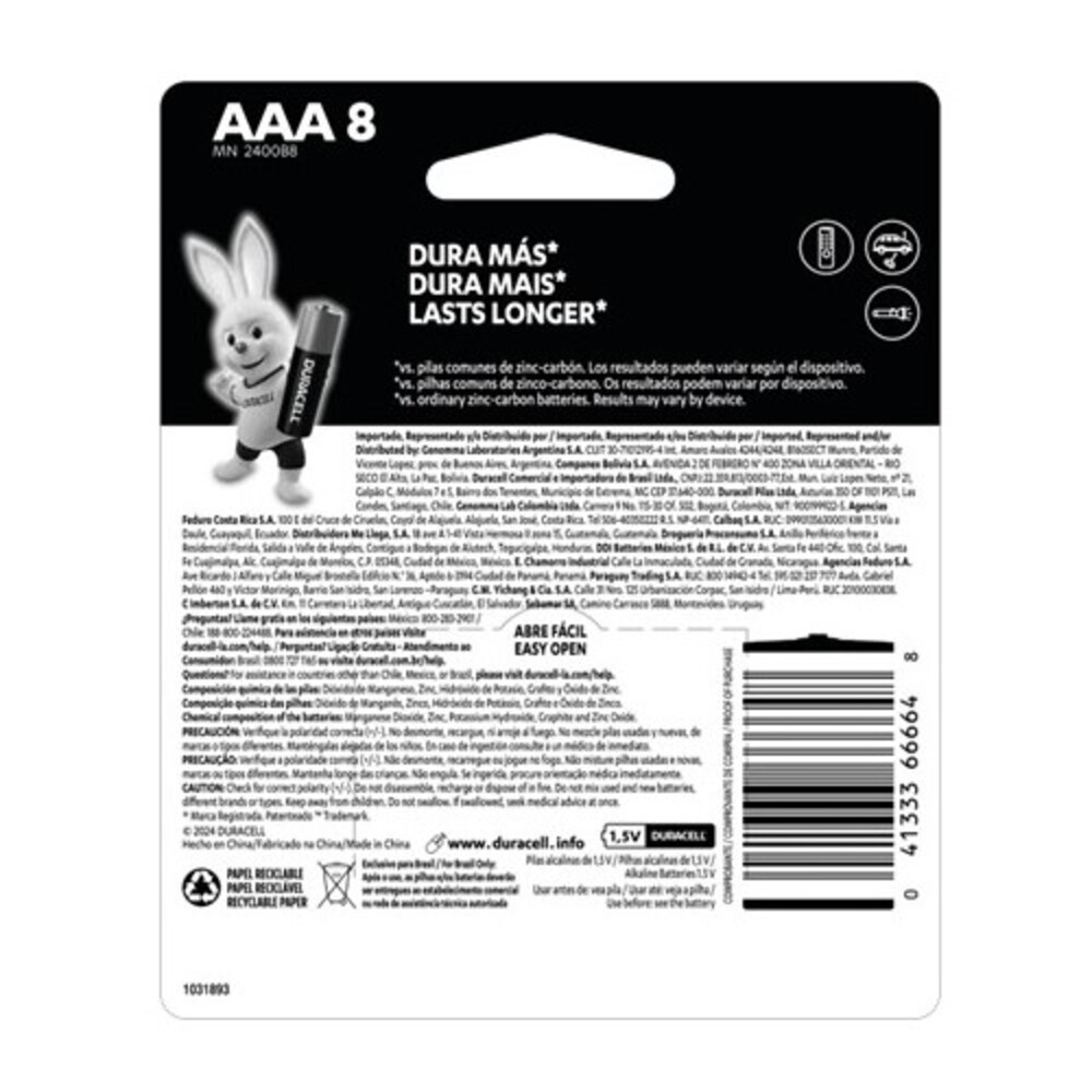 As pilhas alcalinas Duracell® estão disponíveis em uma enorme variedade de tipos e tamanhos, garantindo sempre o produto certo para diversas situações. Ideal para controle remoto, despertador, brinquedos e outros. Contém 8 unidades de pilha AAA.