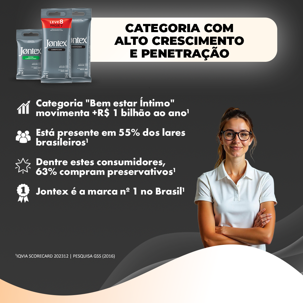 - 63% dos shoppers da categoria compram preservativos¹ e este segmento cresce 8,7% ao ano².