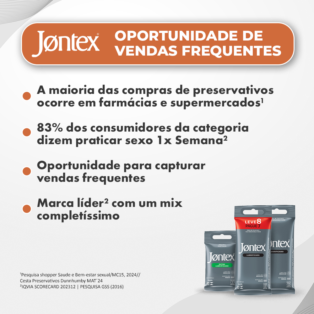 - Jontex é a marca nº 1 em preservativos² e a mais lembrada pelos brasileiros² (Top of Mind Brasil).